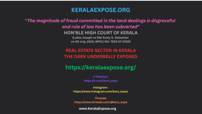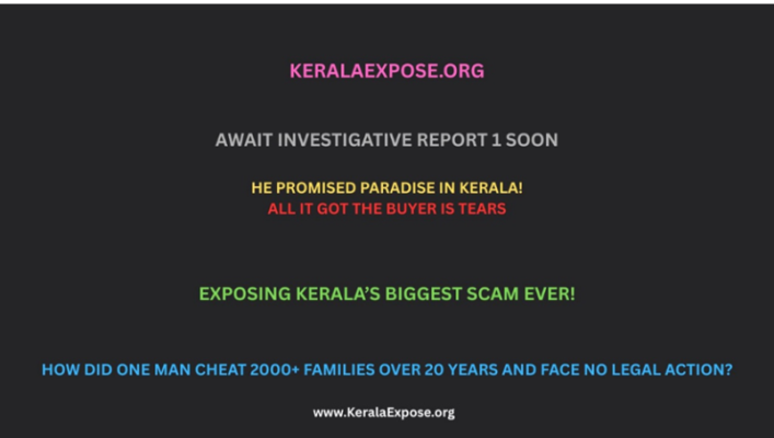 For too long, the explosive growth of Kerala's real estate sector has been viewed through a prism of booming development and seamless investment. KeralaExpose.org, however, peels back this glossy, billions of rupees exchanging, facade to reveal a deeply entrenched and devastating network of wrongdoings, criminal acts, fraudulent acts, nepotism, corruption and scams with political blessings, bureaucratic nexus, police complicity, and environmental plunder that has flourished beneath the surface.