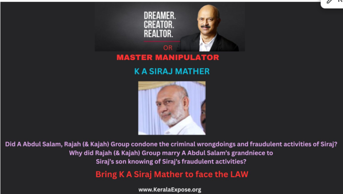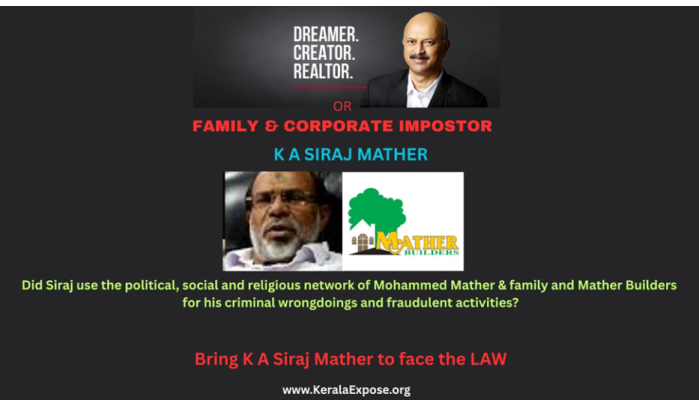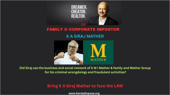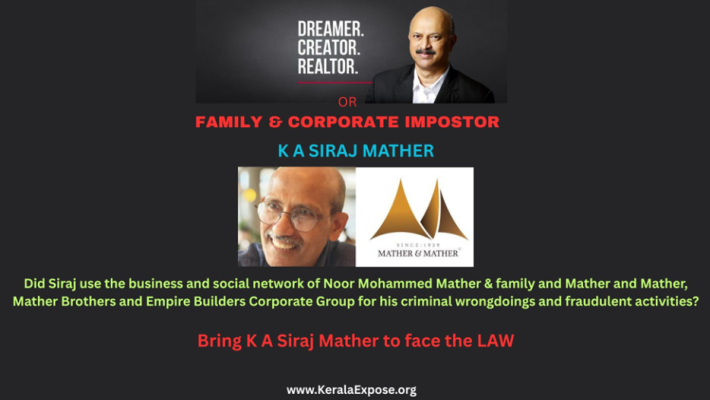 How Kerala's "Lootwallah No. 1 of Kerala" K A Siraj Mather infiltrated two legendary families and corporate groups in Kerala to engineer a ₹ 2000 Crores real estate scam