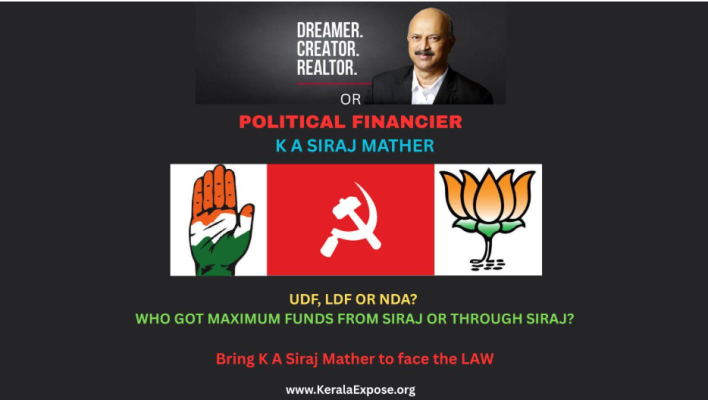 The Political Financing Angle for Protection: Siraj did not stop at one making connections in Congress party alone or in UDF. He boasted widely of collecting and donating massive sums from the real estate sector (on behalf of CREDAI & independently) to the UDF, LDF, and NDA. He claimed that he has effectively purchased a "protection racket" across the political spectrum – all three political fronts in Kerala, ensuring regulatory silence and immunity from the law. And radiated to the cheated investors that he is untouchable by the authorities.
