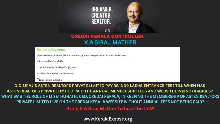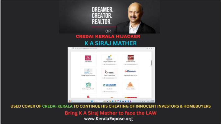 Siraj is so influential in the Kerala Real Estate Sector that he managed to get one of his key fraudulent operators, M Sethunath, appointed as the CEO of CREDAI KERALA https://credaikerala.com/, the apex industry body representing builders in the state.