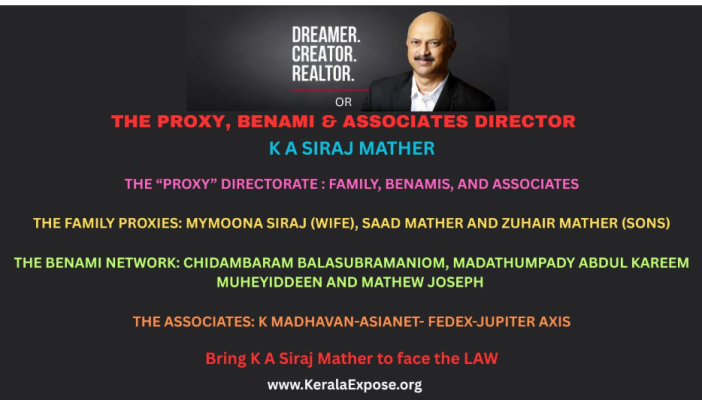 In this explosive continuation of our investigation into the colossal fraud orchestrated by K A Siraj Mather, KeralaExpose.org rips the mask off the corporate camouflage used by Siraj to hide the "Loot of the Century" in Kerala. We expose the dizzying labyrinth of over 130 legal entities – companies, partnership firms, high-profile media houses, trusts, and charitable organizations (primarily Muslim / Islamic Religious Organizations, Mosques and Foundations) - meticulously coordinated to siphon off and launder illicit funds. This chapter lays bare the mechanics of a financial laundering machine where money stolen from unsuspecting investors, homebuyers, Asten Group, Mather Group, and Rajah (& Kajah) Group were routed through a nebulous network of "Benami" holdings and nearly 50 real estate projects to Siraj’s and associates total control at their expense. While the Mather Group and Rajah (& Kajah) Group stand as victims of Siraj’s internal sabotage, our investigation unmasks the details of the specific network of proxies, nominees, benamis, common addresses (for registered offices), and emails used to execute this colossal fraud. Shockingly, our investigation now reveals the role of the “The Asianet-Fedex-Jupiter cabal” in Siraj’s fraud!
