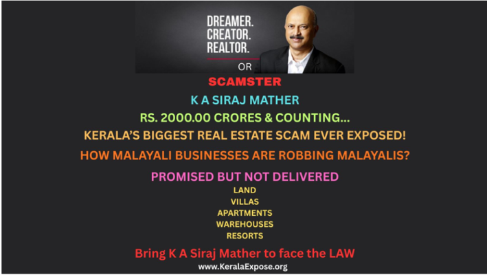 KeralaExpose.org continues our relentless effort to bring to light the unprecedented ₹ 2,000 Crore real estate scam perpetrated by K.A. Siraj Mather in the state of Kerala. He has successfully kept this under the radar of authorities, media, and the public using his influence, money power, and religious fundamentalist network.