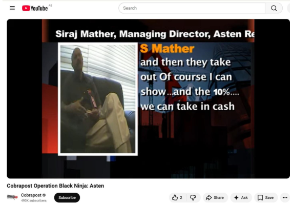 KeralaExpose.org in this chapter publishes a report published by COBRAPOST on 29 November 2014 when Siraj and his Asten Group was at its heights of glory riding Mollywood glamour, support of Asianet-Fedex-K Madhavan axis, operating from the fancy Asten 22 Head Office and selling real estate both legitimate and illegitimate to mesmerized investors and homebuyers. However, COBRAPOST in a sting OPERATION BLACK NINJA exposed “Cobrapost exposes how 35 real estate companies are willing to take illicit money and convert it into legit by allowing their clients to buy properties. Promising to do bulk property transactions ranging from 10 per cent to 90 per cent in black money are two real estate company CMDs, 10 managing directors, 15 directors and executive directors, three CEOs and COOs, a president and a vice-president, two AVPs, four heads of marketing and sales, three general managers, three assistant general managers and many other senior employees. One employee even offers to take Rs. 100 crore in black and convert it to white with help from non-banking finance companies in a clear violation of Income Tax laws, Foreign Exchange Management Act, Prevention of Money Laundering Act and others.” ( https://www.cobrapost.com/blog/operation-black-ninja-cover-story/915). In the sting Operation Black Ninja by COBRAPOST in 2014, Siraj’s black money dealings and offer was caught on camera by COBRAPOST Investigative Journalists. We share the COBRAPOST Operation Black Ninja on K A Siraj Mather here.